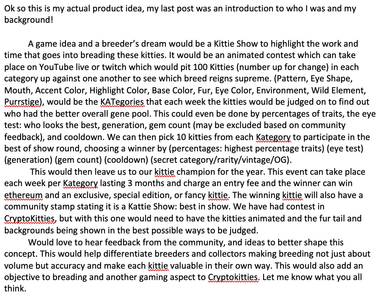 Thank you for the feedback and yeah we would need requitable judging from veteran breeders and maybe even CK team members or celebrity judges. But I’m glad you like the idea! I still have a long way to go fleshing it out.